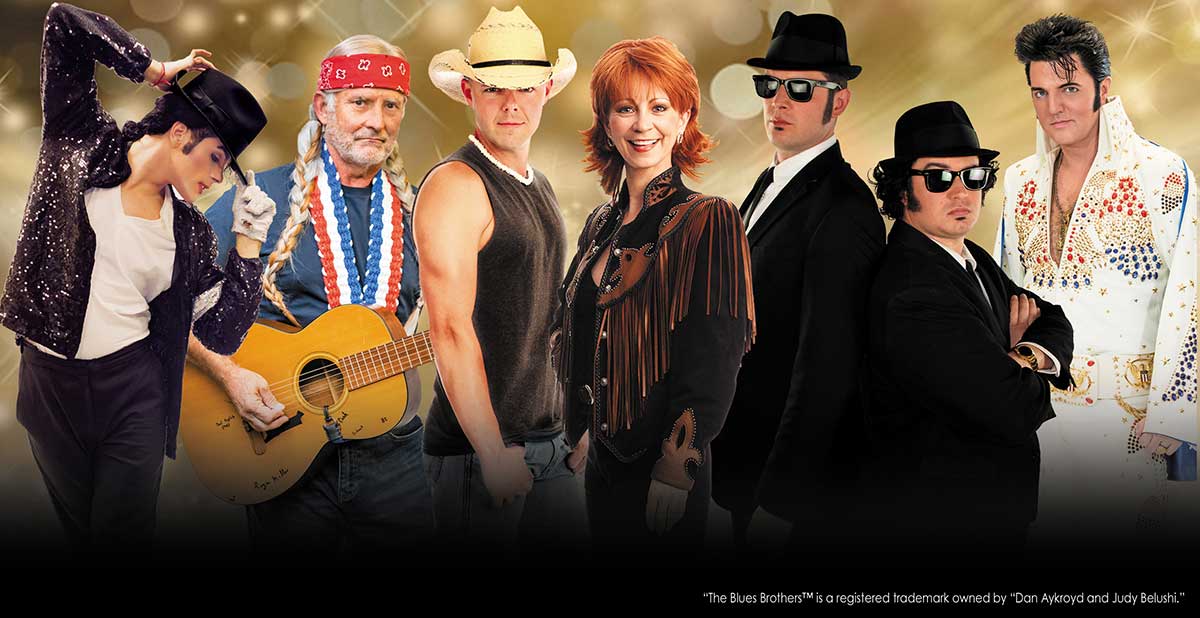 Internationally recognized as The World’s Greatest Live Tribute Show, Legends in Concert dazzles the young, old, and in-between with fun filled entertainment the whole family will enjoy! See tributes to stars such as Toby Keith, Adele, Shania Twain, Lainey Wilson, Liverpool Legends, The Judds, Freddie Mercury, Cyndi Lauper, Elvis, and The Blues Brothers™ rock the house at the Pepsi Legends Theater! With a rotating line-up that changes four times a year, there is truly something for everyone! Located on the world- famous Highway 76 “strip” in the heart of Branson, Missouri, the Pepsi Legends Theater boasts 966 seats and a million dollar spectacular stage set! Make plans to join us for A Merry Country Christmas, Nov. 1 - Jan 3, 2026, and our Rockin' New Years Eve spectacular* Dec. 31st at 9:30pm! Regular non-Christmas shows play after Christmas, from Dec. 26- Jan. 3).
