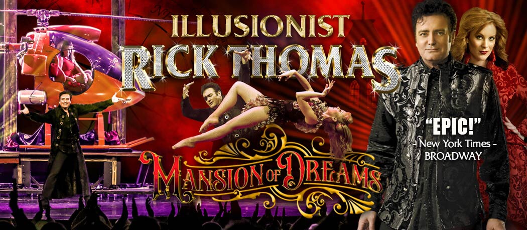 The internationally acclaimed, multi-award-winning illusionist Rick Thomas presents his crowning achievement, 'The Mansion of Dreams', right here in Branson! This is an amazing journey never to be forgotten, best described as EPIC!
